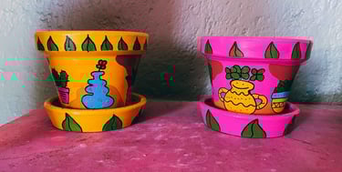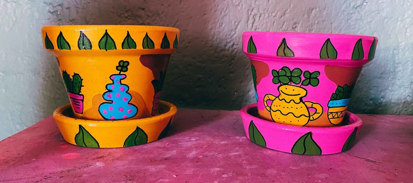 ¡No puedo dejar de pintar en todo lo que tenga enfrente! Muebles, objetos de barro, bolsas, ropa, etc. Y es que quiero que todo tenga un toque único y colorido. Así que, si tienes algo que quisieras decorar con gusto puedo hacerlo por ti.